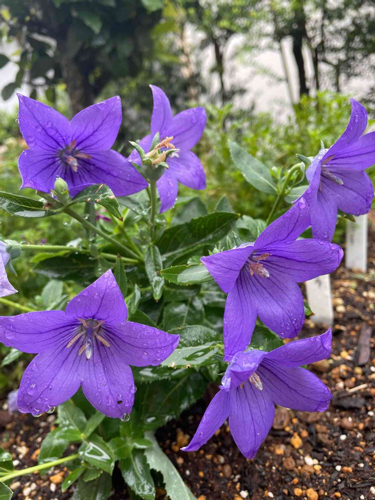 涼しさを増した朝の空気。先日お迎えしたキキョウが、絶賛開花中です♪