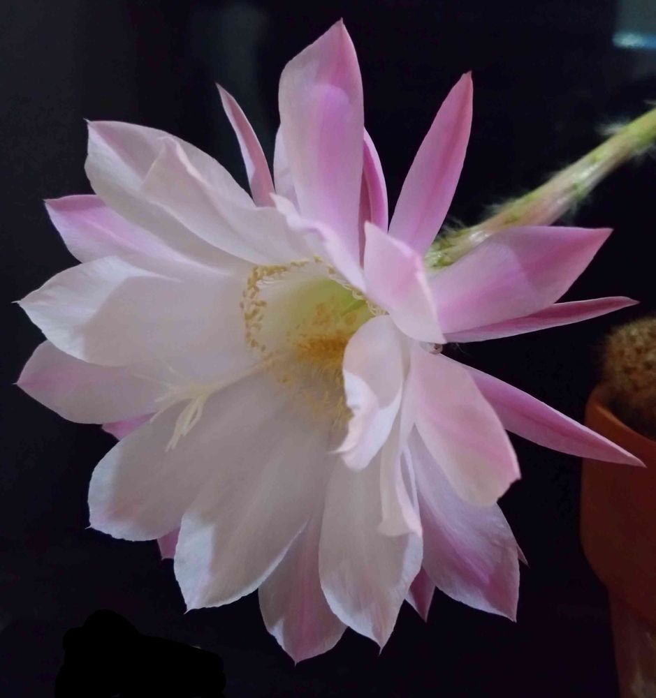 昨夜はなかなか開ききらなくて諦めたのですが、今朝はこんな感じに咲いていました🌵