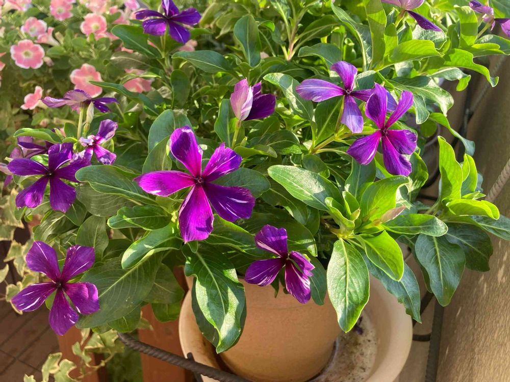 ずっと調子が悪かった日々草が今になって元気に咲き始めた😊