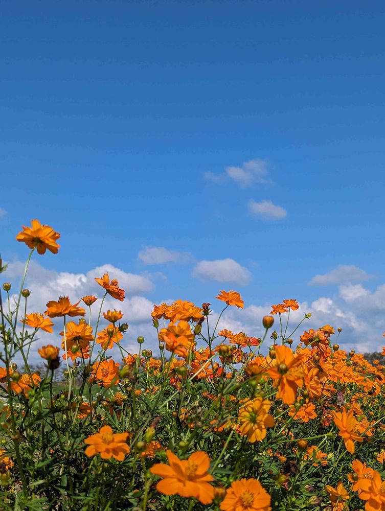 爽やかな秋空にキバナコスモスが気持ち良さそうに咲いていました✨