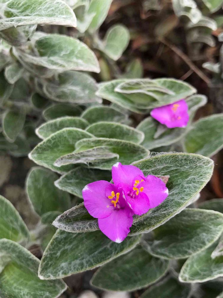 トラディスカンティア シラモンタナは今日もマイペースで咲いていま〜す。庭のすみっこ暮らし😚✌️💖