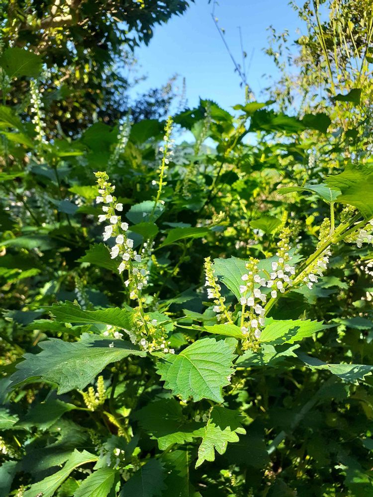 家庭菜園のオオバが咲きました。季節の移ろいとともに、食材が葉から実へ変わります。後1ヶ月程でご飯のお供の醤油漬けが食べられそう。