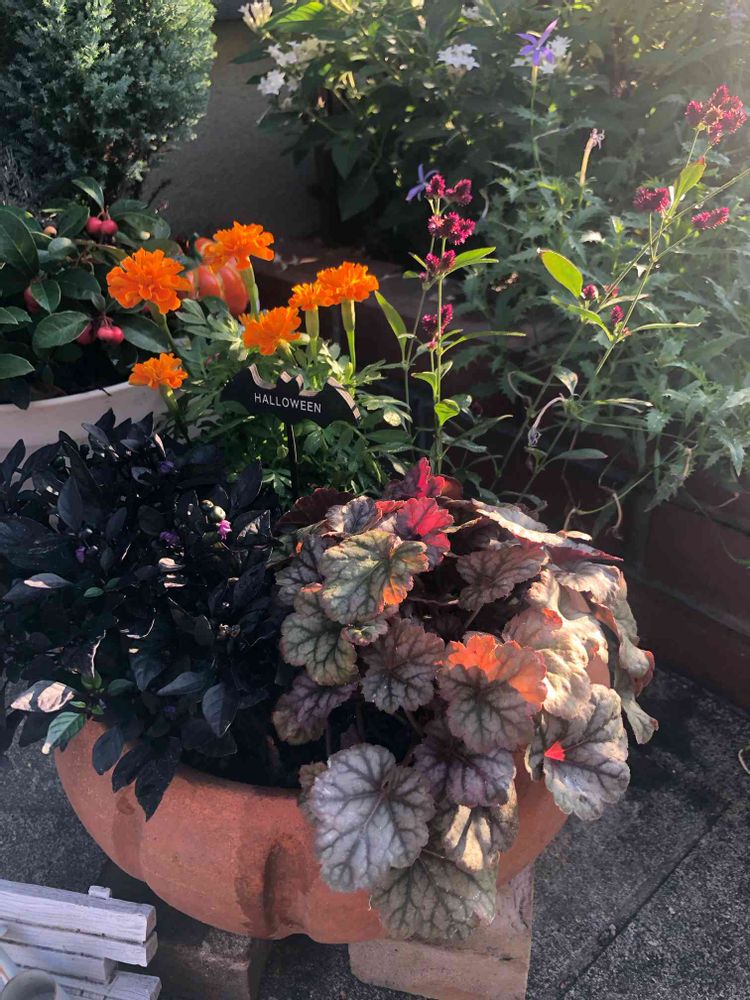 昨年寄せ植えしたヒューケラさんだけ元気に残ってくれたので寂しかったまわりにまた寄せてみました💕初めての千紅花火さん風に揺れた姿がかわいいです🪴✨💓
