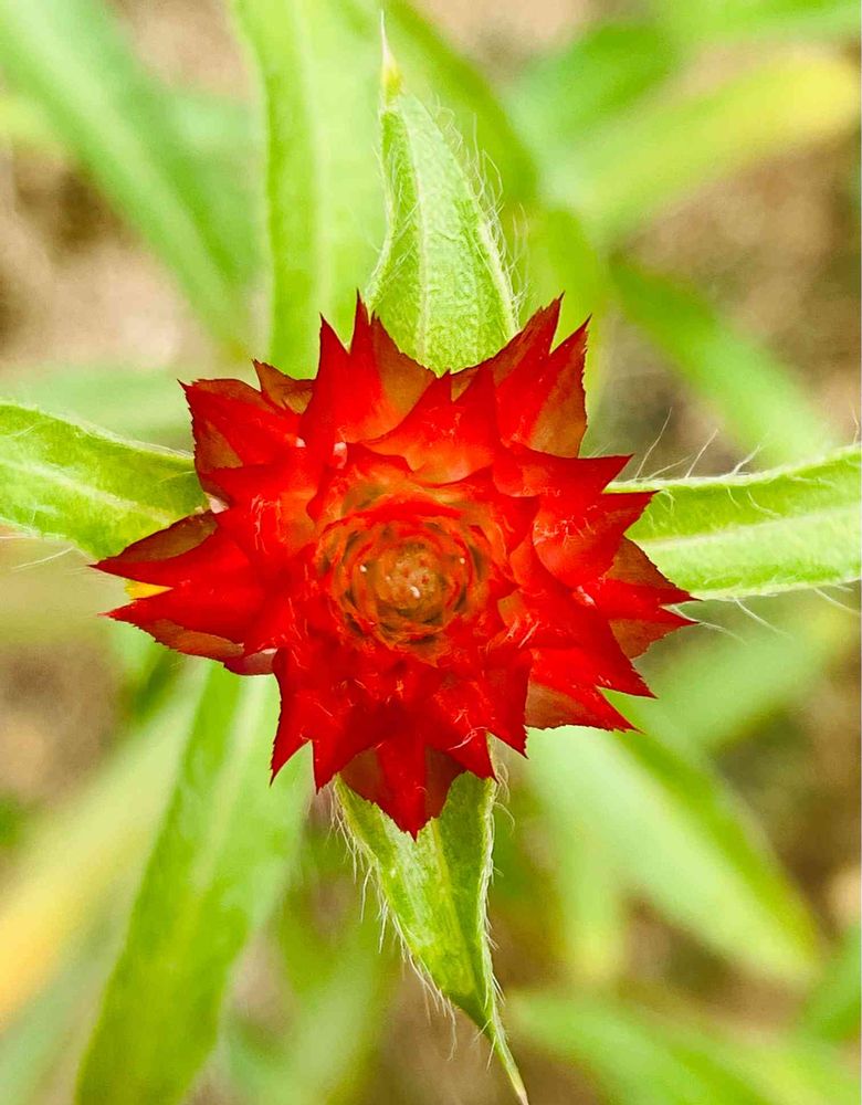 真っ赤な千日紅を真上からドアップで( *´꒳`*)