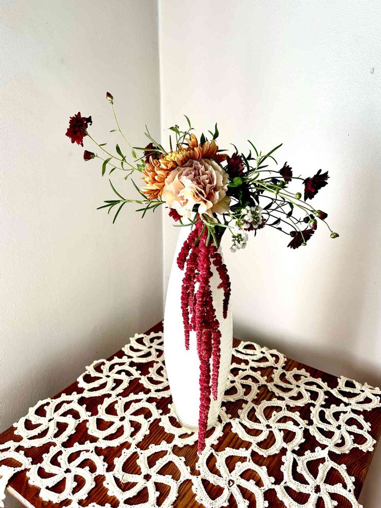 花材: 小菊、アマランサス/ヒモゲイトウ、