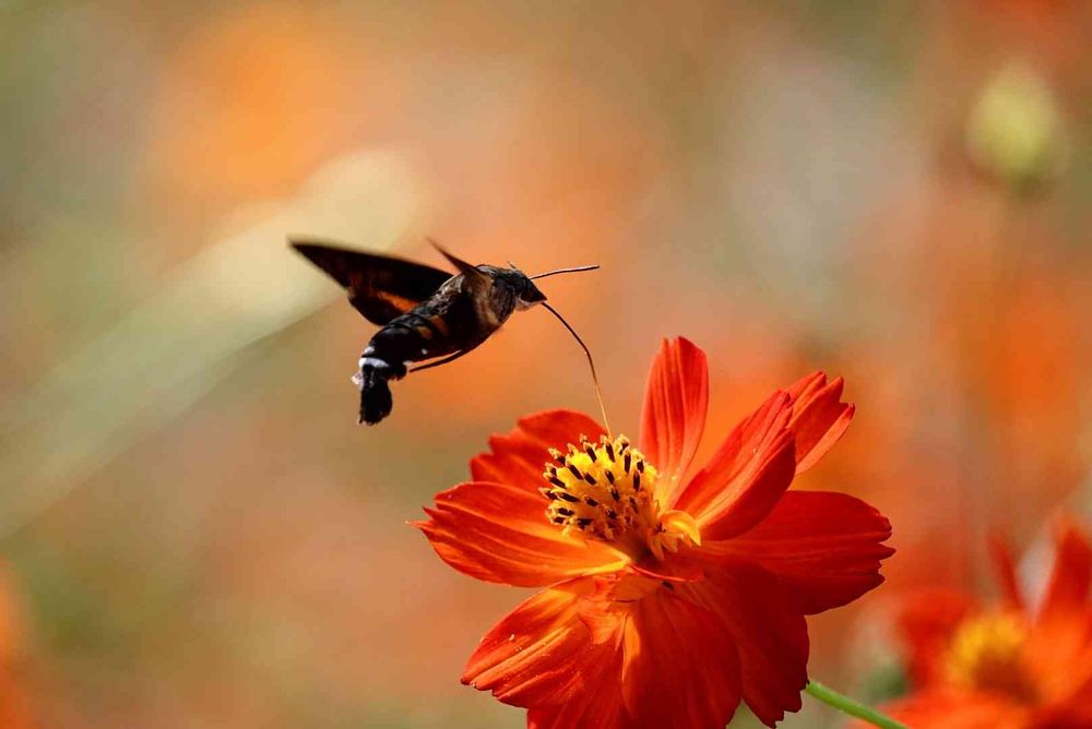 ホウジャクは落ち着きがなく、花から花へと忙しなく移動するので、ピント合わせが追いつきません💦