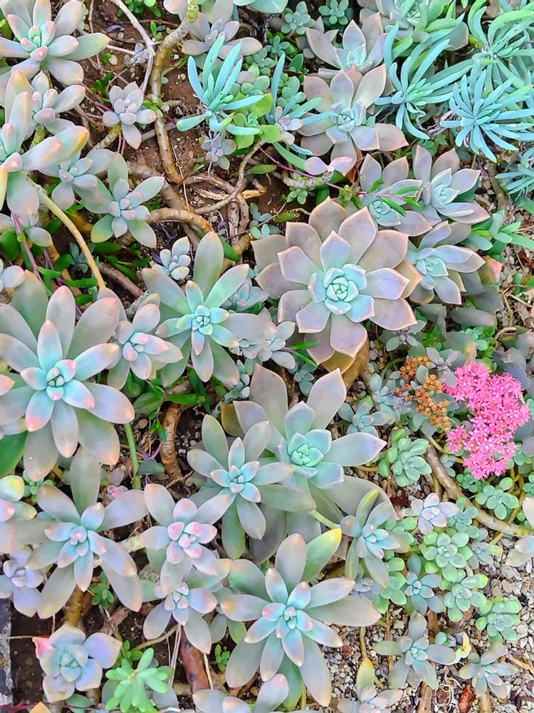 北側花壇の地植え多肉ちゃん達😻💚🤍🩷