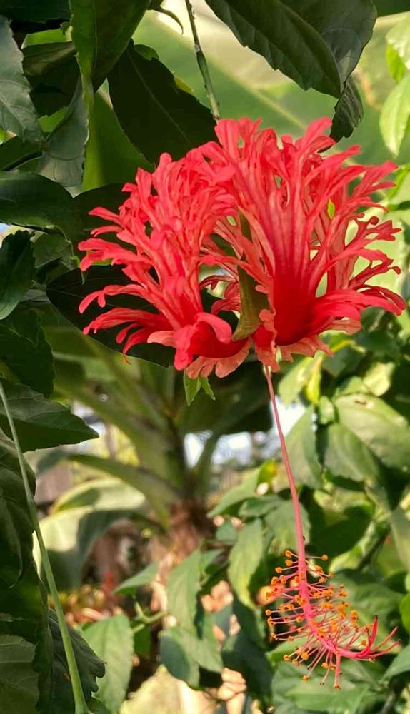 樹高は5m位あり赤い🌺が房状に下がっているのが長い!確かに風鈴みたい😆