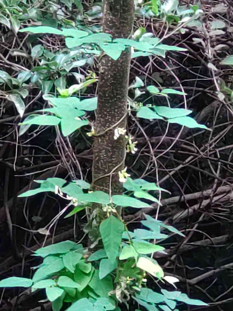 木に絡んでいる蔓はノササゲですよね~😲(急斜面なので🤳めいっぱい)