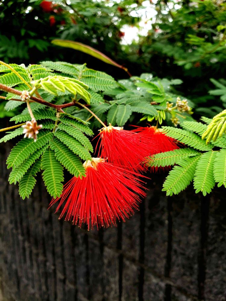 散歩道での真っ赤な紅合歓〈ベニゴウカン〉‼️