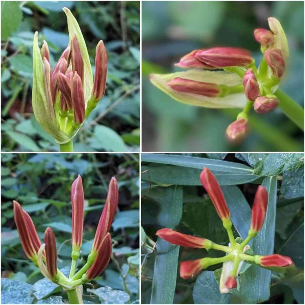 昨日斜面の彼岸花は未だ蕾の状態でした それを数えてみると6〜8個でバラ付きがあるようです