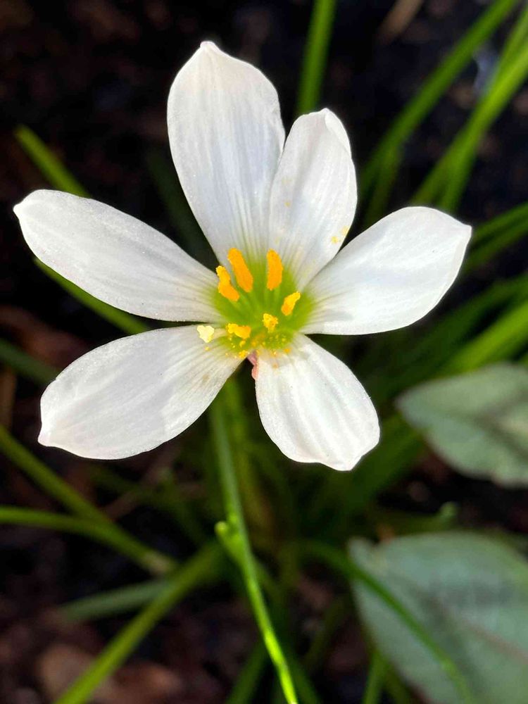 Zephyranthes candida/Zephyranthes Amaryllidaceae. Asparagales. Liliopsida. Tracheophyta Commonly called/Autumn Zephyrlily. White windflower. White zephyr lily Native to/South America including Argentina,Uruguay,Paraguay and Brazil Flower meaning/Flower of the west wind(from Greek) Symbolism/Rebirth. New beginnings. Big expectations *The genus name is derived from the Greek words “Zephyrus”, the Greek god of the West Wind, and “anthos”, meaning ‘flower’. *It ia generally used to cure diabetes, breast cancer, chest ailments also viral infections. *It was first described by John Lindley, in 1823 as Amaryllis candia. It was transferred to its genus in 1826 by William Herbert. *The plant is known as “Fairy Lili” because it usually appears out of nowwhere. Photographed 10/4 9:27am 2023 Posted 10/4(Wednesday) 11:24am 2023