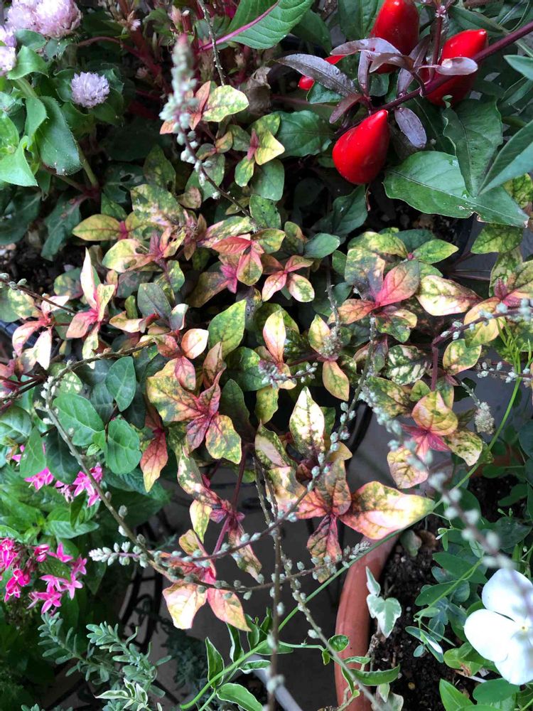 寄せ植えのアルテルナンテラ マーブルクイーンがいい色🍁になってきました🥰