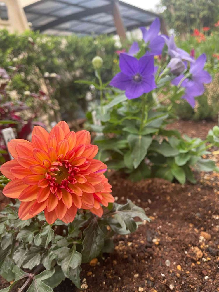 この時期ならではの、ダリアと桔梗の共演♪風も爽やかです。