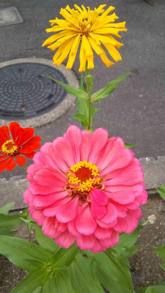 近くの幼稚園の前に咲いてるジニア!楽しませて貰ってます☺️