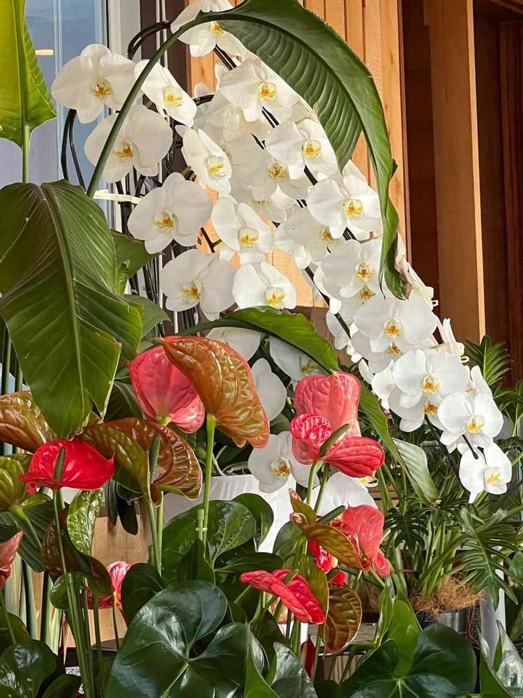 立派なコチョウランとアンスリウムの鉢植えに釘付けになりました😳