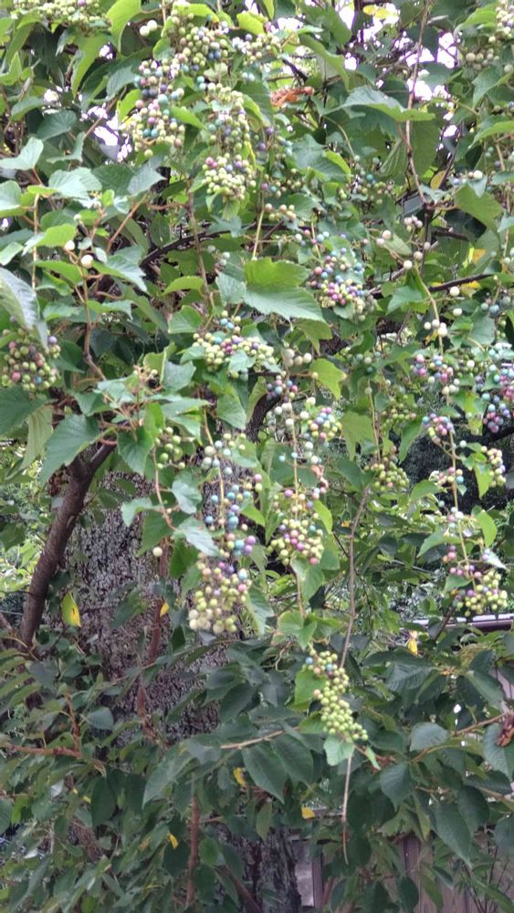 さん、こちらのノブドウは広い場所にいっぱいですが実の大きさはバラバラです😅実の色がカラフルですね😁宝石みたいな実もあって綺麗です👍😍私も一部アップしていますので参考になればとおもいます🤔