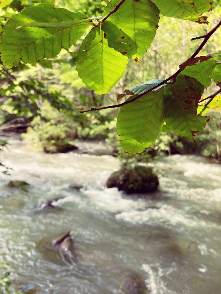 ブナの葉っぱ。もうすぐ紅葉の始まる大人の葉っぱに光が透けて、新緑ではないけれど、とても綺麗でした。