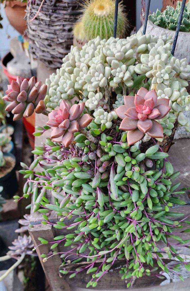 だるま秀麗&ブロンズ姫&ルビネさんの寄せ植え🤗ギュッと寄り添って♥♥