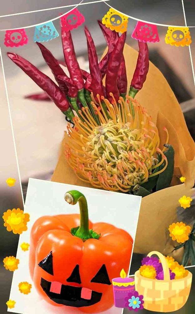 🍊色のパプリカをジャック・オー・ランタンに変身させました👍
