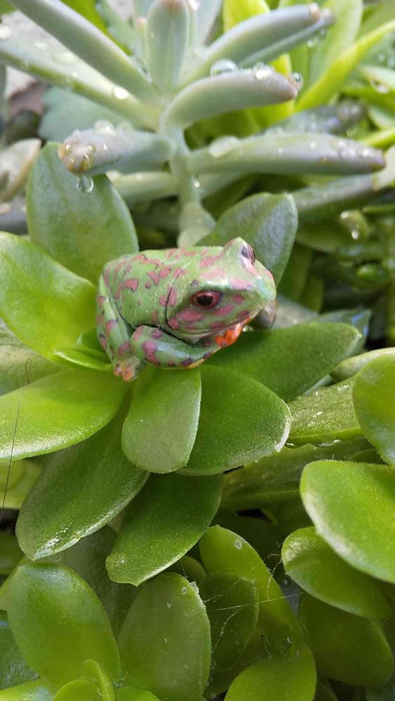 ちょっぴり,「迷彩柄」のカエルさん😊…