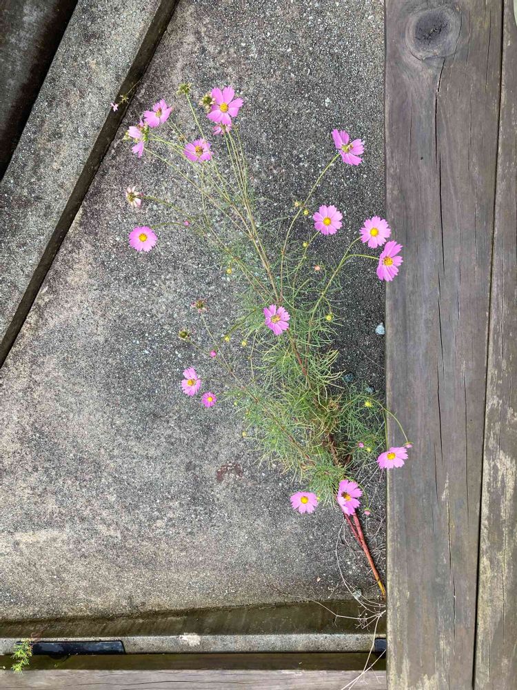 我が家のウッドデッキの所に、ど根性コスモスさんがいました🌸