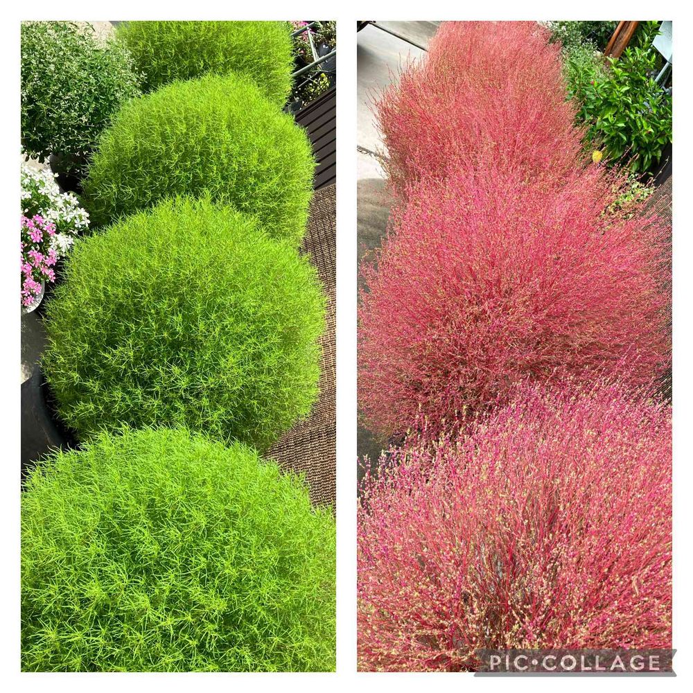 コキアはこぼれ種で強いし、緑のたぬき型も涼しげだし、赤い子はクリスマスにもぴったりだし、🧹にしても可愛い😍