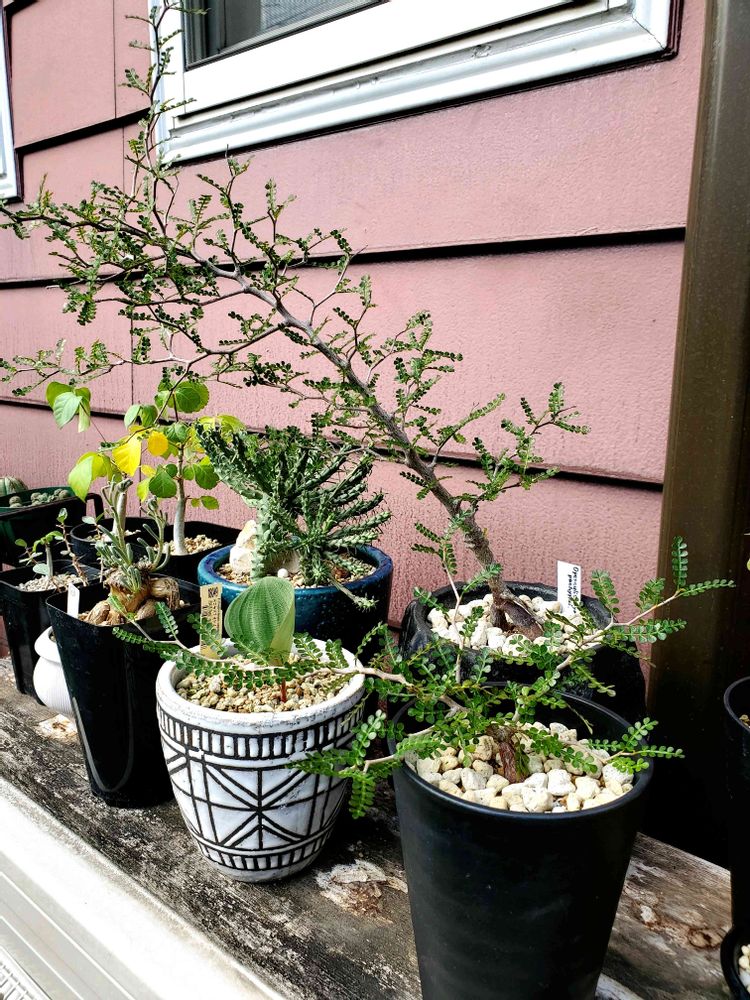 左手前は「エリオスペルマム カペンセ」今年も大きな葉になりそうです❗
