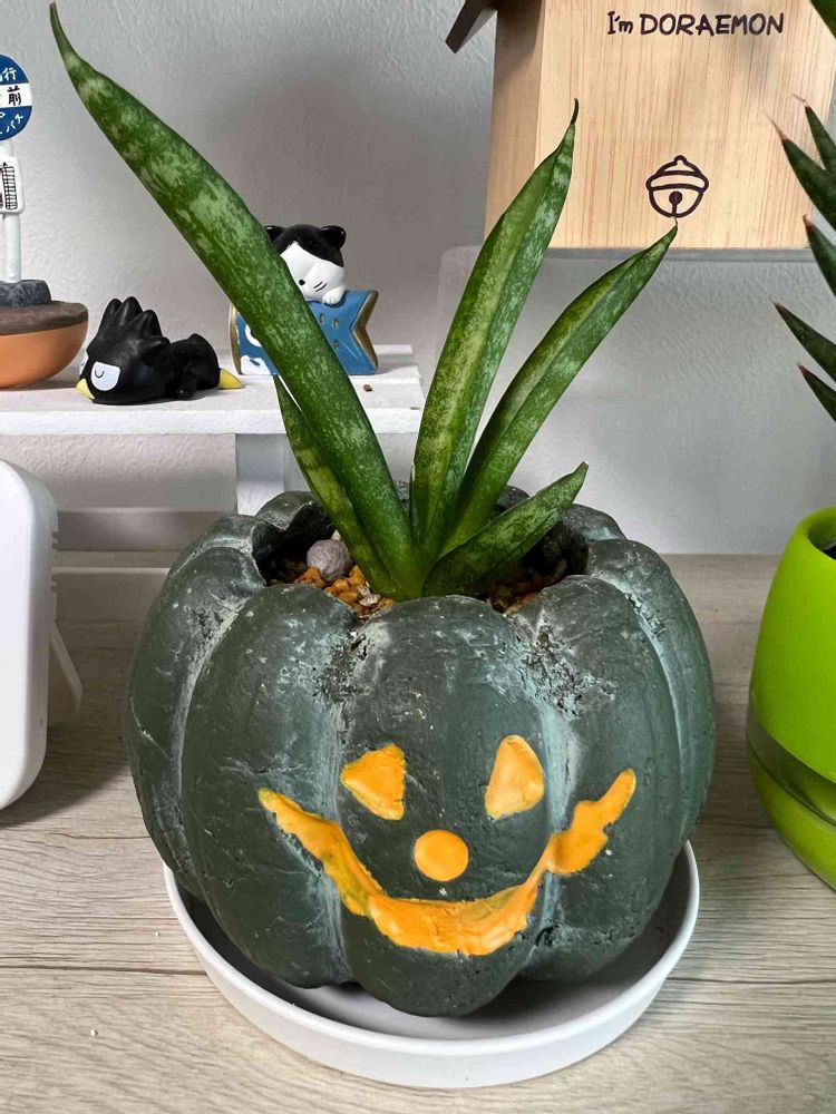 近づくハロウィン🎃株分けしたサンセベリアボンセレンシスをハイドロから土植えにしました🪴