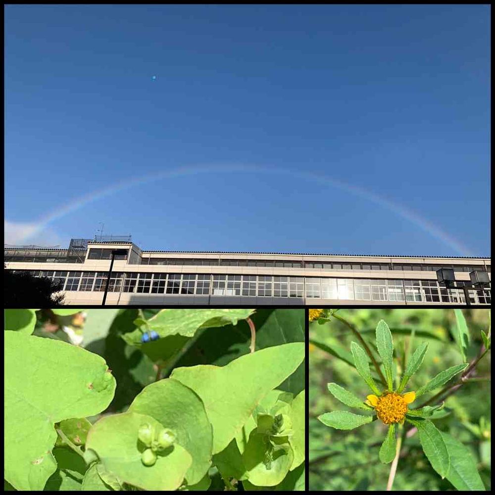 空には両袂までハッキリした虹🌈がかかってた
