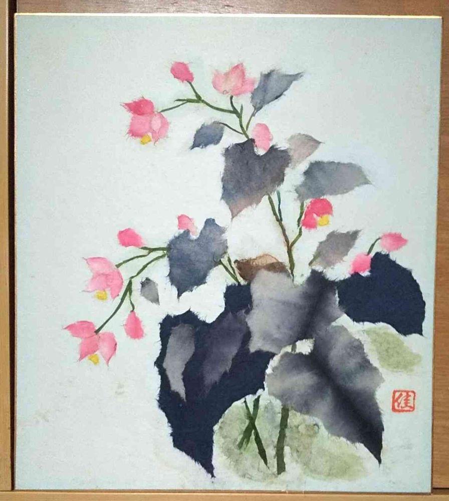 シュウカイドウ(和紙貼り絵)💞