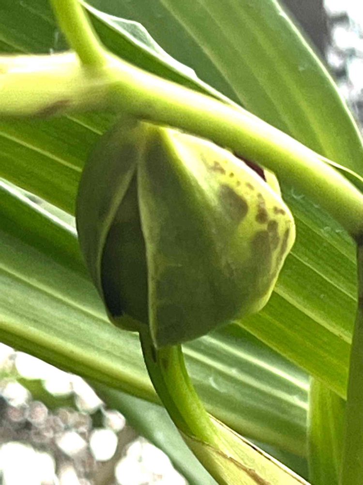 これは何とも言えない面白い色をしていますね💜あと、ウチのはペタルやセパルに豹柄のような斑点があります。