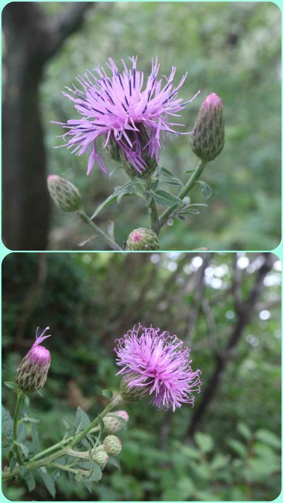 キクの名が付いても、他人のシオガマギク(ハマウツボ科)。タムラソウの名が付いても、他人のアキノタムラソウ(シソ科)。そしてコノ娘は、アザミの従姉妹で、タムラソウ。アザミにそっくりですネ。違いはトゲが無い、総苞片が開かない。蕾を見ると総苞片の様子が良くわかります。もう一つは、⬇️の様に、雌蕊クルリンが可愛い。
