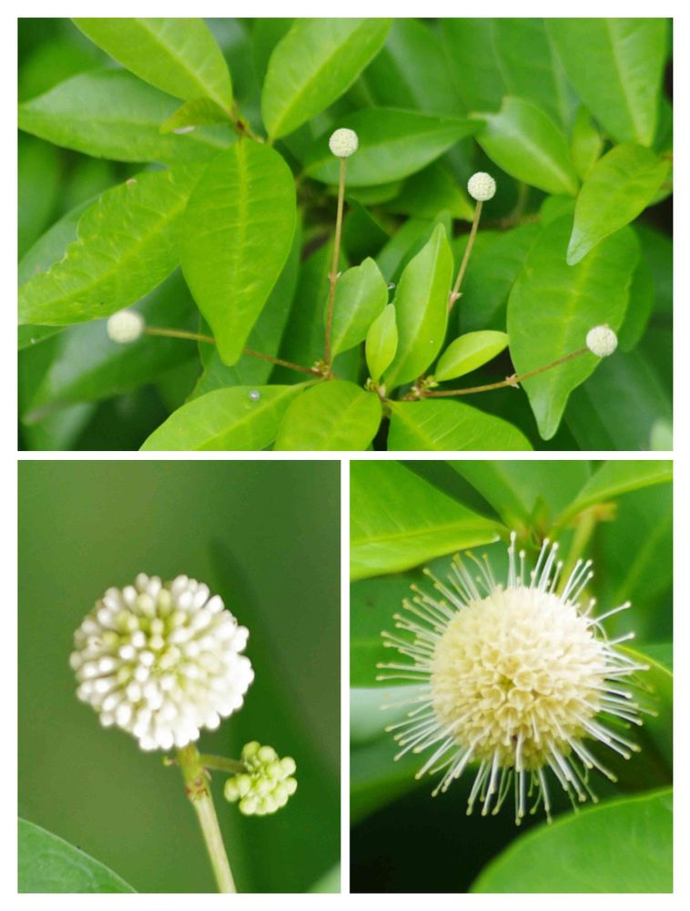 ⬆ 枝先あたりの 葉腋から 3~4cmの花柄を伸ばし 球状花序をつける。この写真は蕾です。