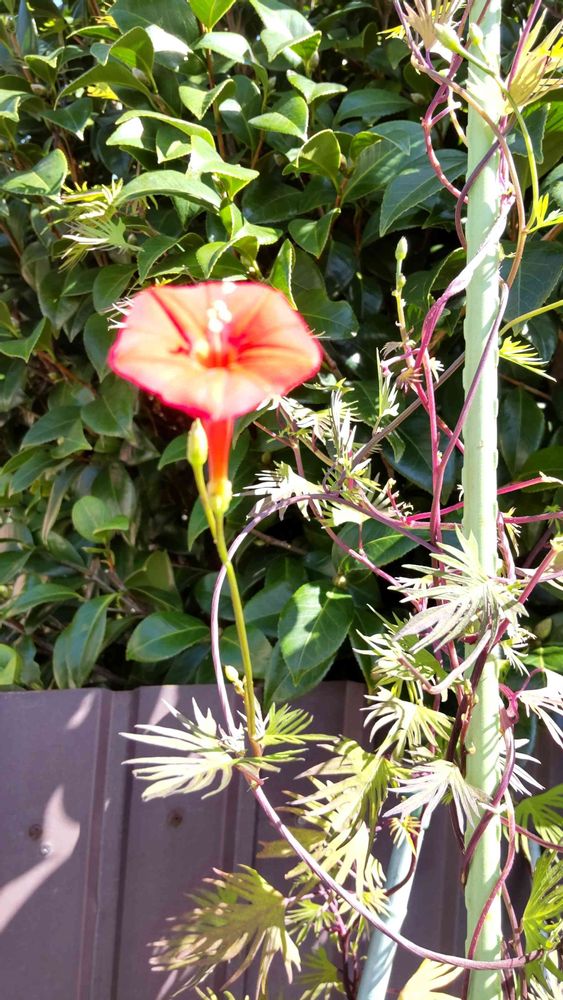 ルコウ朝顔🧡♥️可愛い😄上へ伸びて、高い処で、咲いてるから、強引に、蔓ごと、したへ😜北海道の、花ともより、種を貰いました❗️