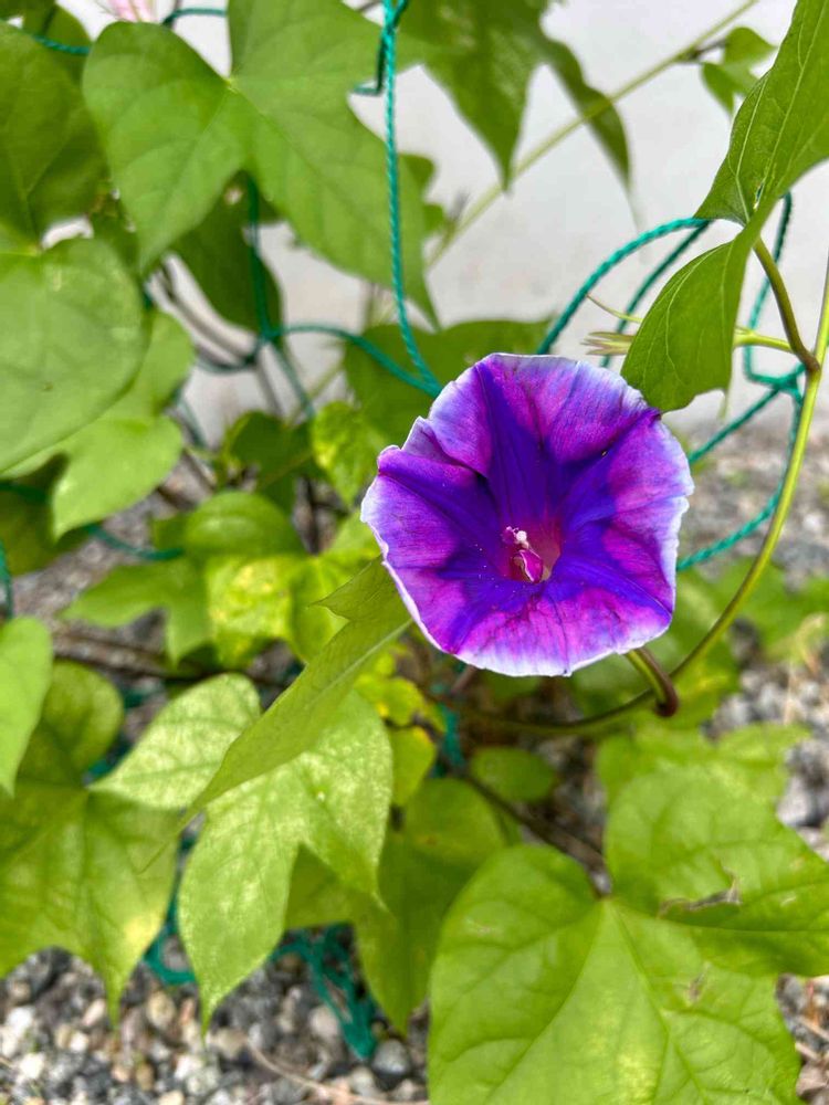 ここ数年、網ネットにはゴーヤしか植えてなかったのに、こんな朝顔植えたっけ?🤔の朝顔が最近、開きだした😊