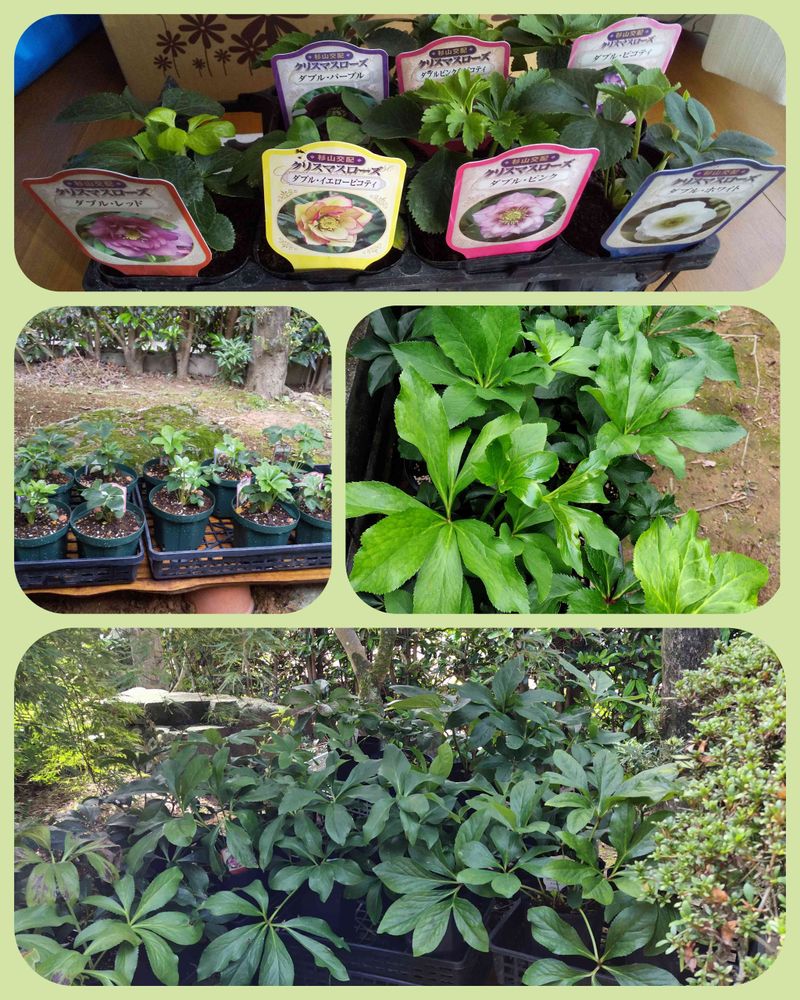 昨年9月にネットショップで3号ポットで買ったダブルとシングルのクリスマスローズ17個
