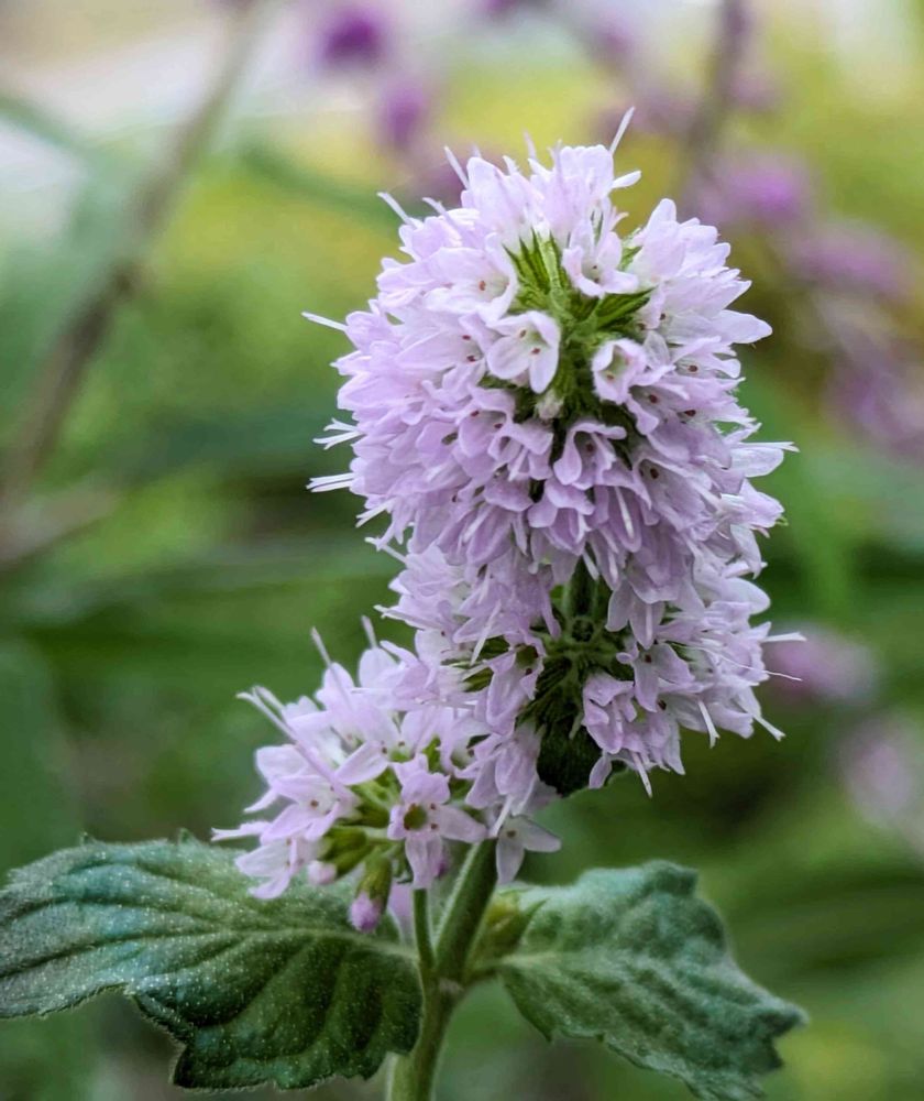 裏庭に植えているミント🩷が一本だけ可愛い花を咲かせています•••でも他の茎が虫に殺られて枯れそうです(´⊙ω⊙`)!