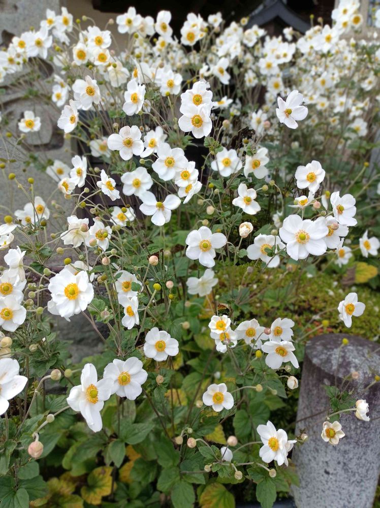 朝晩と寒さが深まってきました。遠目からも秋明菊の花が風に吹かれて優しく揺れてる様。