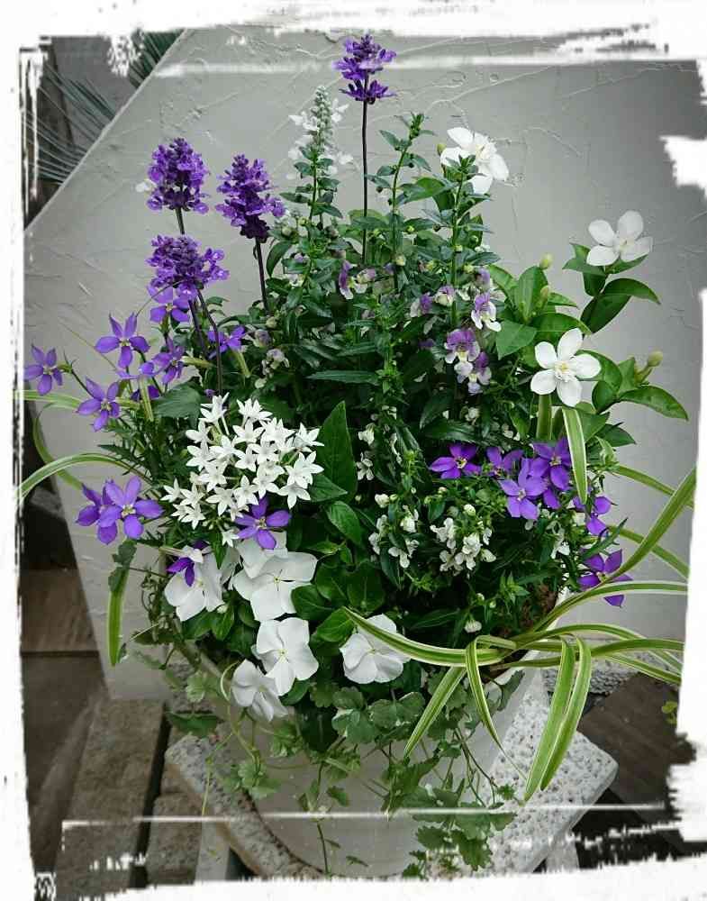 さんおはようございます(*´∀`)♪♡♡♡✨🌿🌿🌿💜💜💜ありがとうございます(・∀・)人(・∀・)💙💙💙~この時期は青いお花が少ないので~紫も青のお仲間として使います😉☝️✨~夏は涼しげカラーが少なめですが~それだから💙余計に求めてしまいマスヨネo(*⌒O⌒)b~マッ( *´艸`)何をおっしゃいますやら~happy.゚さんの選ぶ植物達👍✨センスがあってオシャレです😉