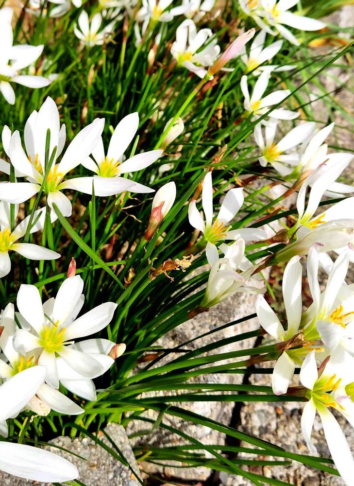 日光を浴びて白い色がまぶしい タマスダレが咲いていました😀