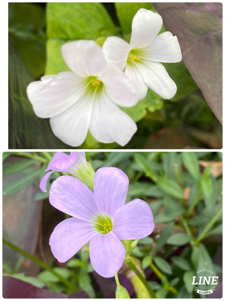 オキザリスの1番咲きはトリアングラシスの白の舞と紫の舞です。