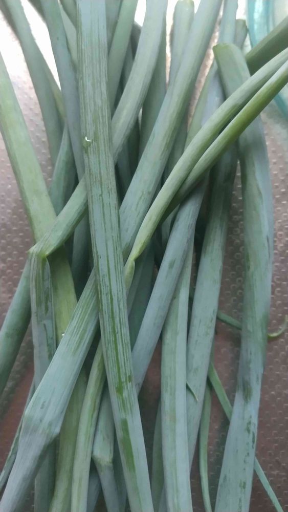 冬越しして、去年からずっと伸びて食べ続けてる、葱、味十八番。素晴らしい香りです。