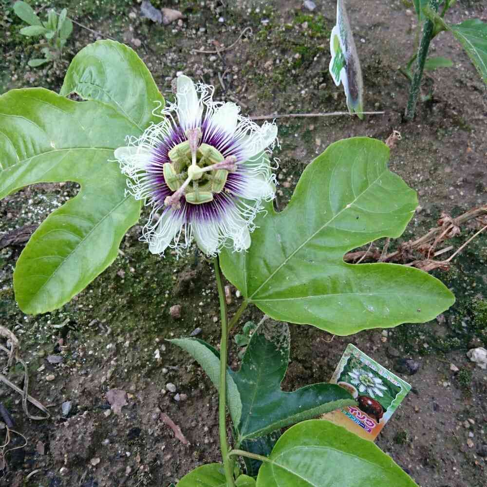 初めてパッションフルーツの花が咲きました!朝は咲いていなかったのに夕方帰ってきたらひっそり咲いていました🌼
