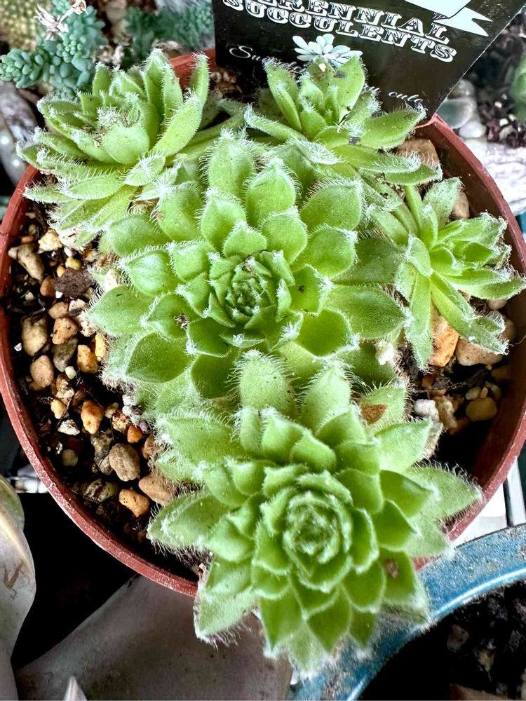 昨日、少し大きな鉢に植え替えしたセンペルビウム シルバータウ。