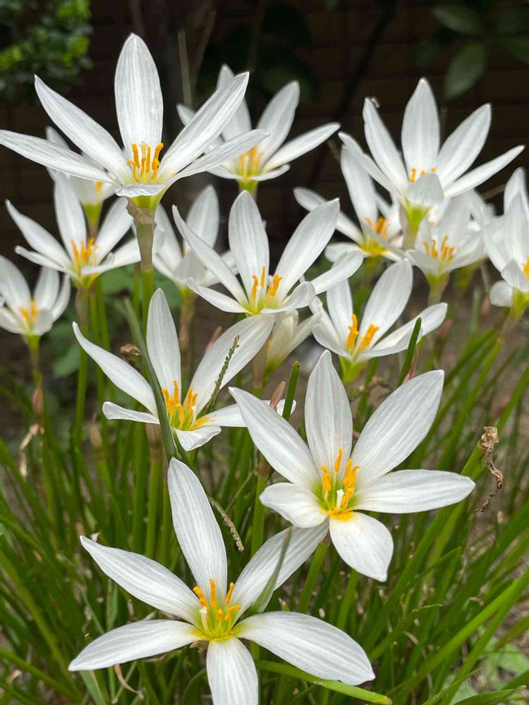 ゼフィランサスやレインリリーは、タマスダレ(白)やピンクや黄色の花の総称。
