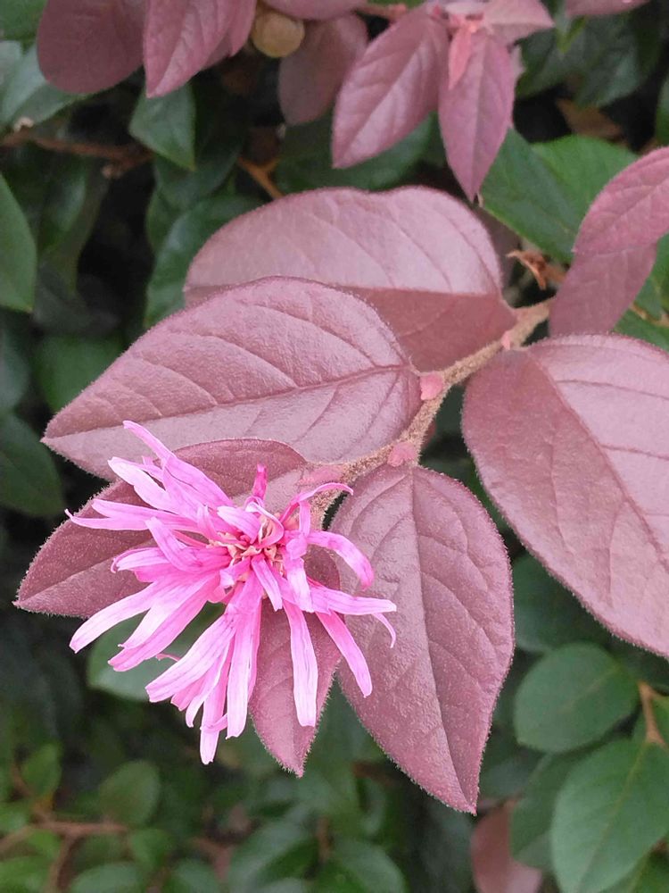 ベニバナマンサクとも呼ばれ、葉や新梢もやや赤みがある。
