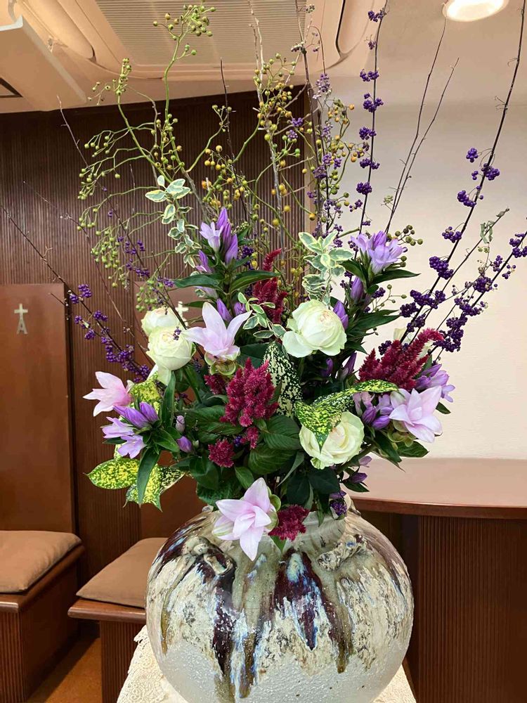 きょうの教会の装花は、秋らしいお花で素敵でした✨