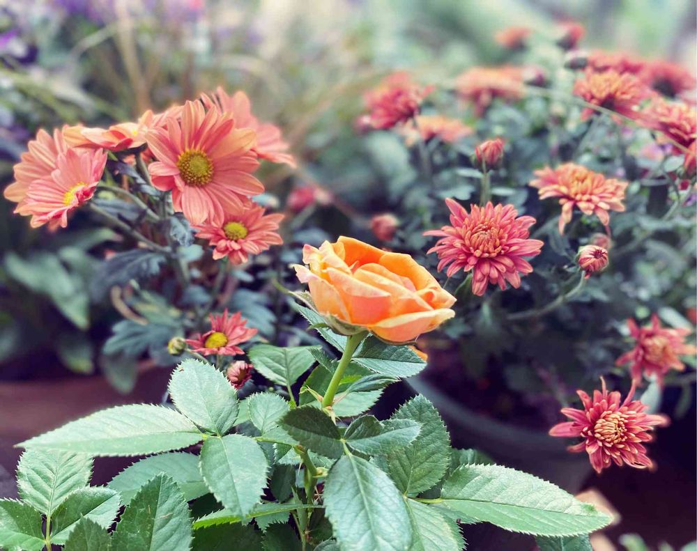 近くのホームセンターで目に付きお迎えしたミニ薔薇とマムです🎃🧡🎶