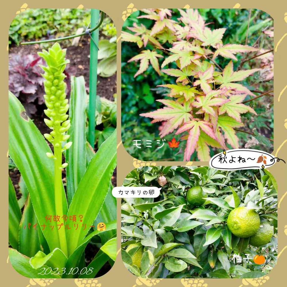 もう秋というのにパイナップルリリーが一本咲こうと伸びてきた😂